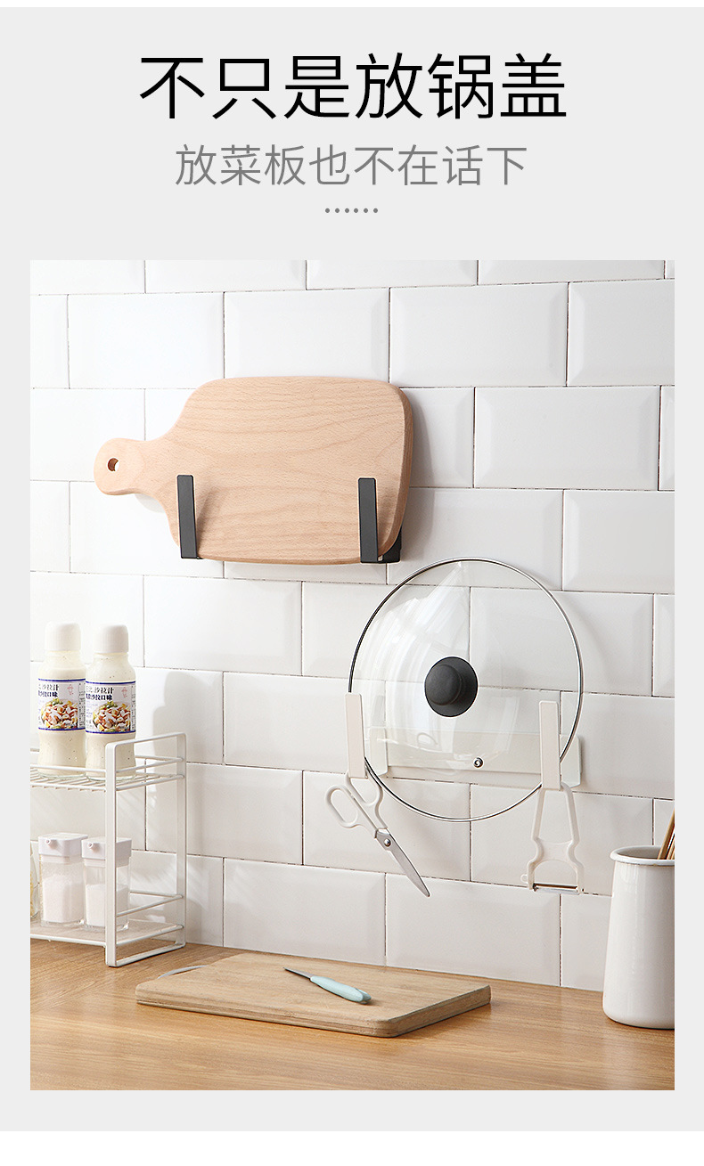 日式简约免打孔锅盖架壁挂式碳钢一体成型锅盖架厨房砧板架置物架