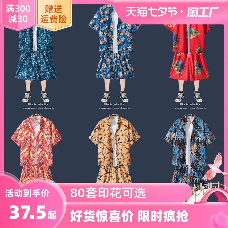 여름 비치 정장 남성 반팔 꽃 셔츠 캐주얼 스포츠 하와이 커플 해변 반바지 휴가 투피스 세트