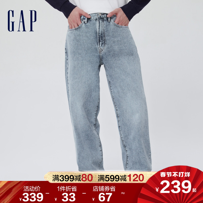 갭 남성 봄 코튼 루즈 와이드 레그 스트레이트 레그 베이직 청바지 462864 아메리칸 캐주얼 팬츠