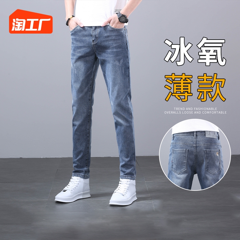 레트로 작은 발 청바지 남성 가을 2023 새로운 작은 스트레이트 슬림 탄성 조류 남성 캐주얼 바지