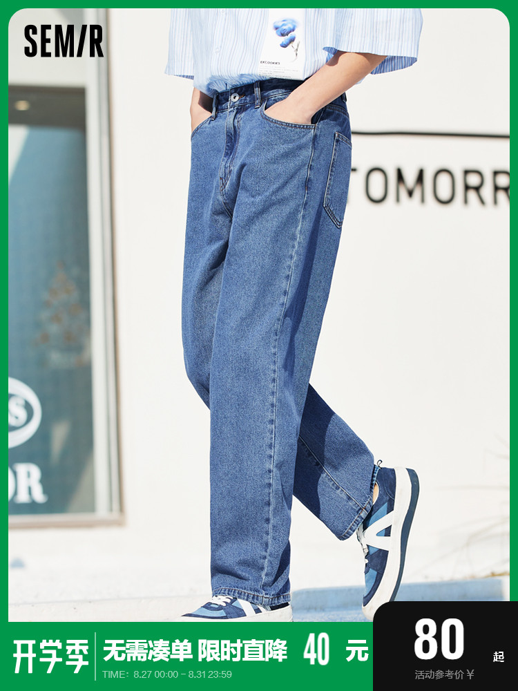 센마 청바지 남성 여름 얇은 섹션 스트레이트 팬츠 남성 느슨한 와이드 다리 하이 스트리트 팬츠 여름 새 바지 조류