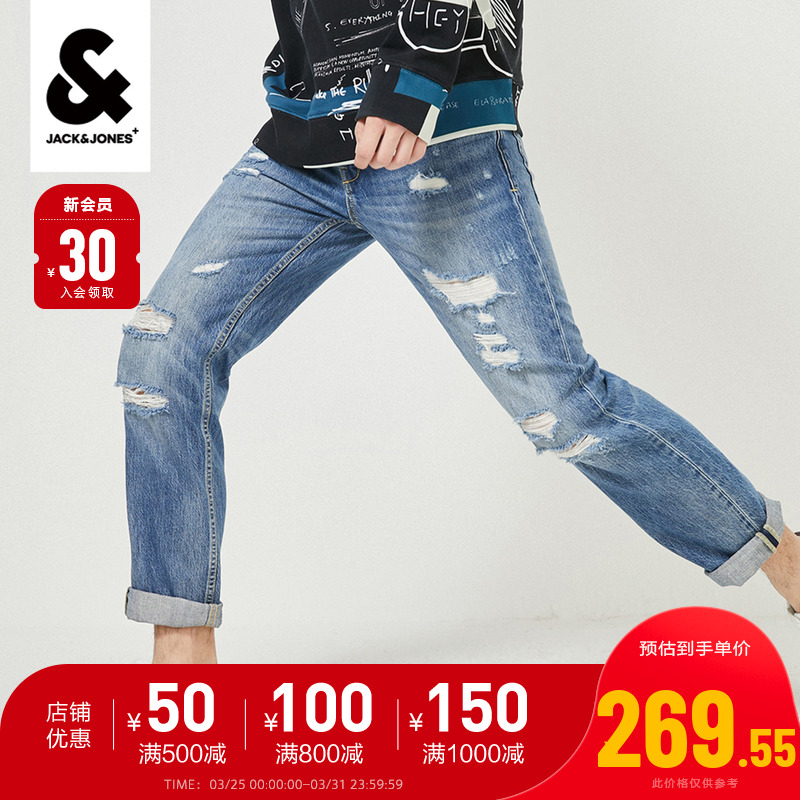잭존스 잭존스 봄 가을 패션 남성 트렌드 다용도 구멍 한국 잘생긴 청바지 220232514
