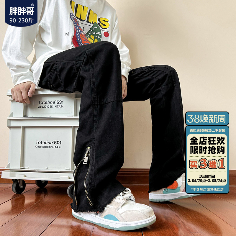 통통한 형제 청바지 남성 봄과 가을 미국 복고풍 모델 하이 스트리트 분위기 큰 사이즈 느슨한 스트레이트 블랙 팬츠 조류