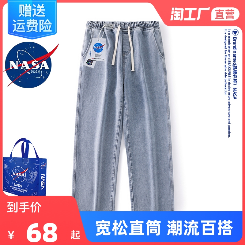 NASA 공동 브랜드 복고풍 여름 단색 스트레이트 봄과 가을 청바지 남성 조류 느슨한 와이드 레그 캐주얼 백 바지