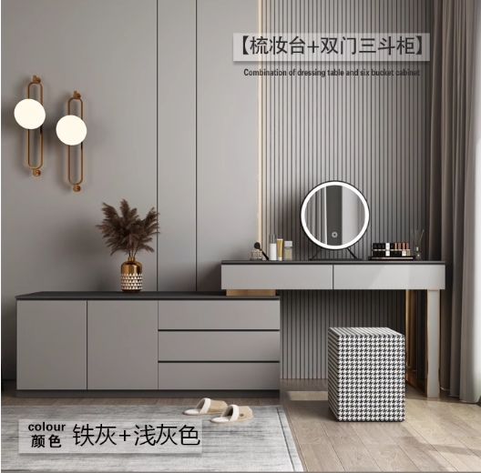 轻奢高级卧室梳妆台收纳柜一体多功能可伸缩小户型化妆桌床尾斗柜