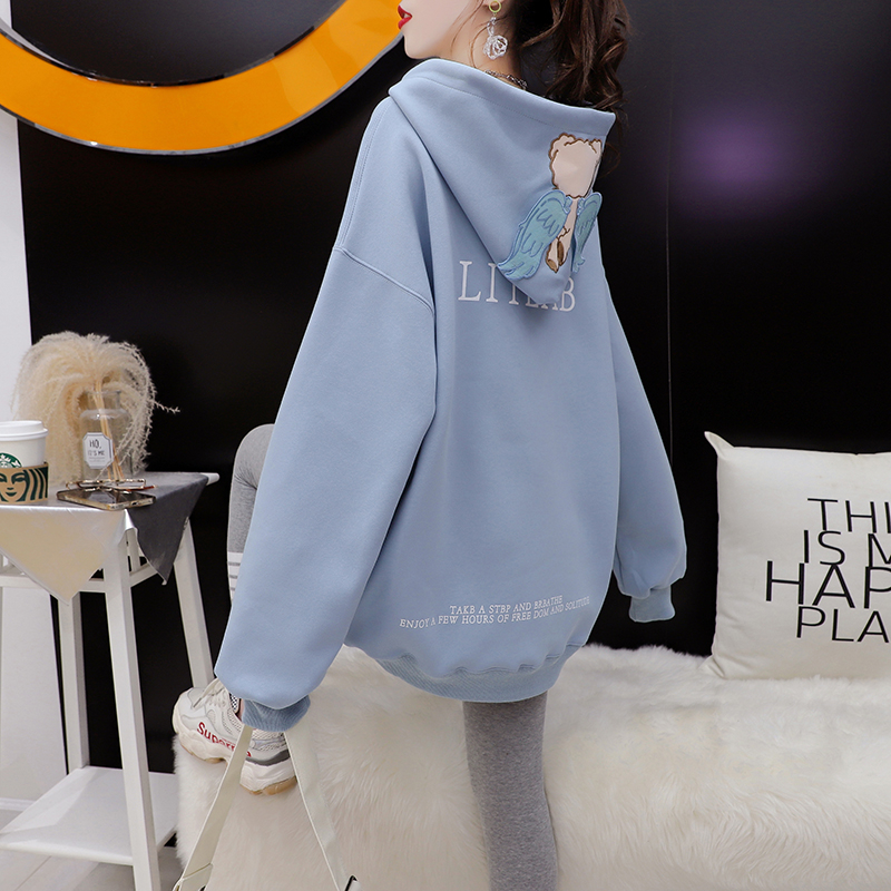 코튼 후아 코튼 백 랩 칼라 공식 피규어 2024 봄 디자인 만화 프린트 후드 스웨트 셔츠 여성용