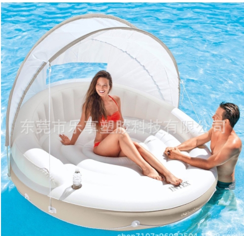 户外水上充气带遮阳棚沙发加厚水上充气 超大漂浮垫